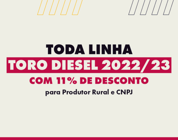 Toda Linha Toro Diesel 2022/23 com 11% de desconto para Produtor Rural e CNPJ